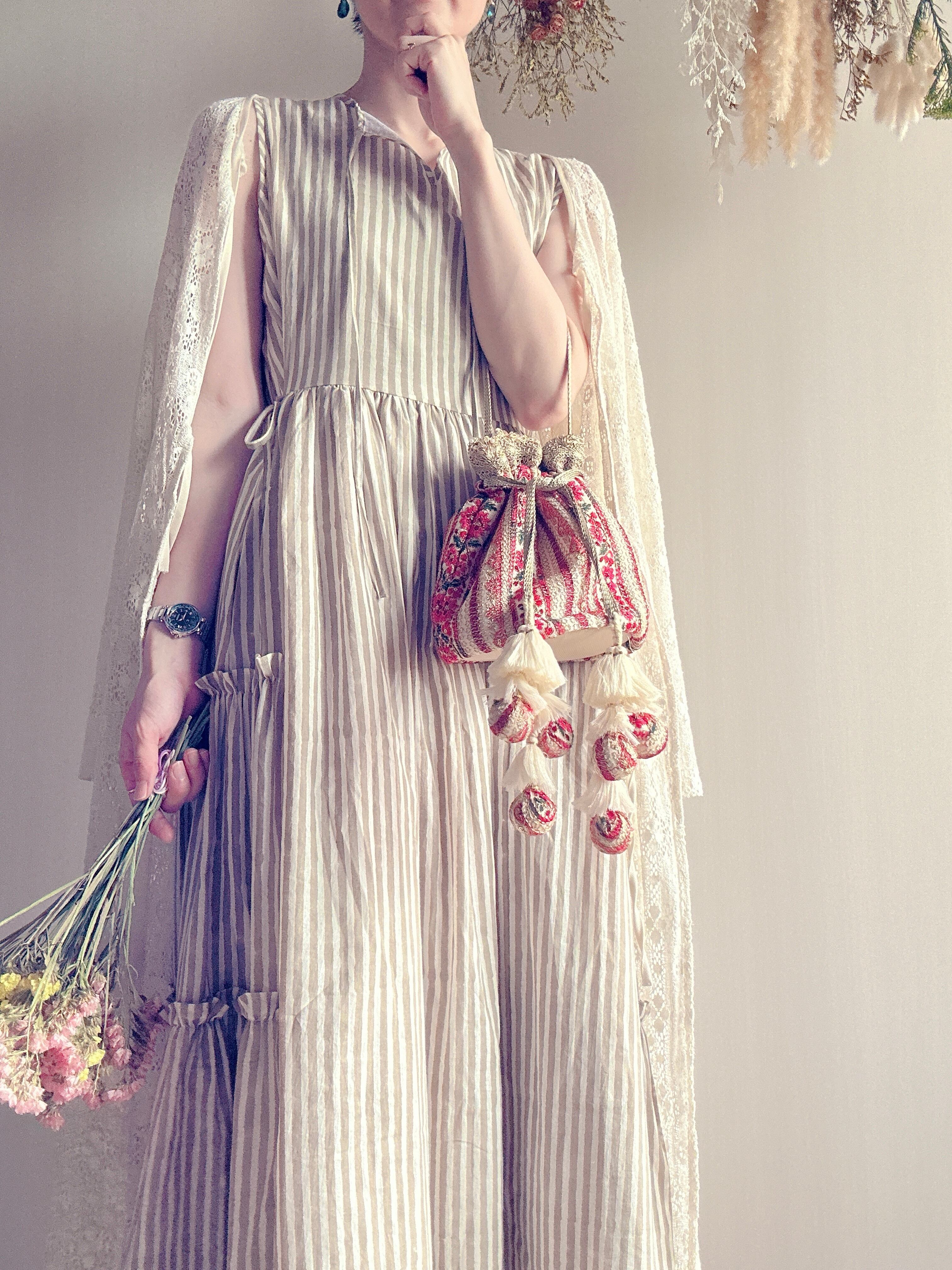口の部分にはゴールドの繊細なレースのような刺繍が縫い付けられています