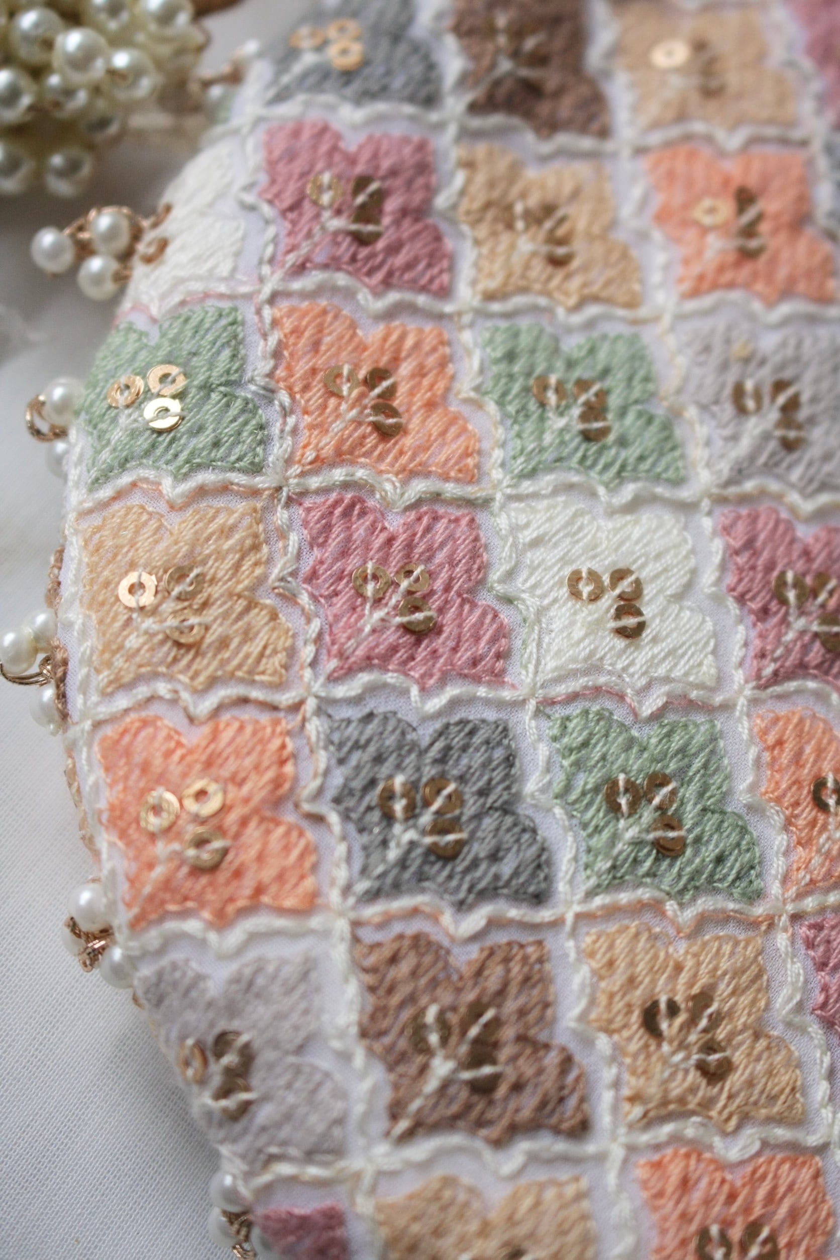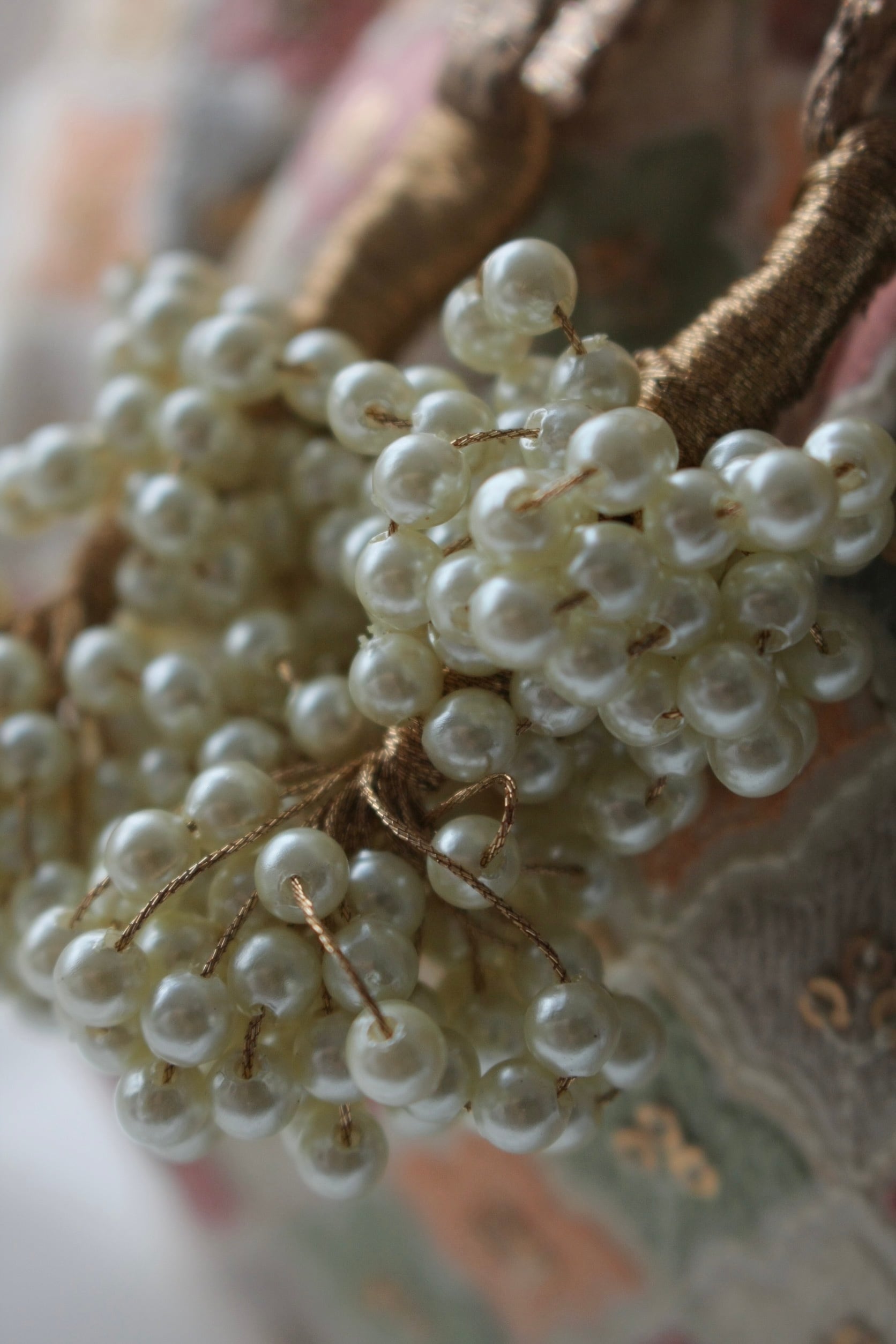 幾つものビーズと糸が重なり合い、