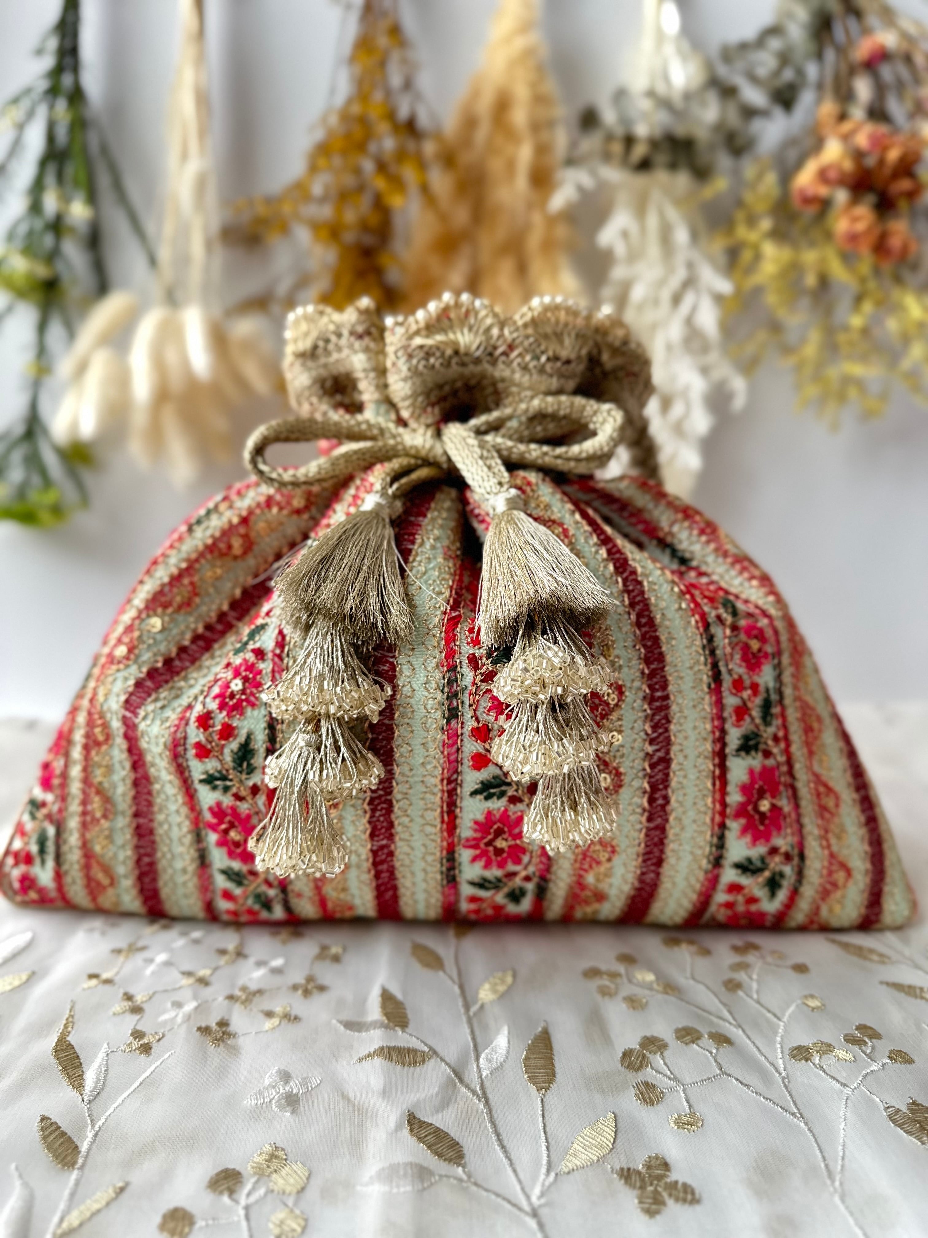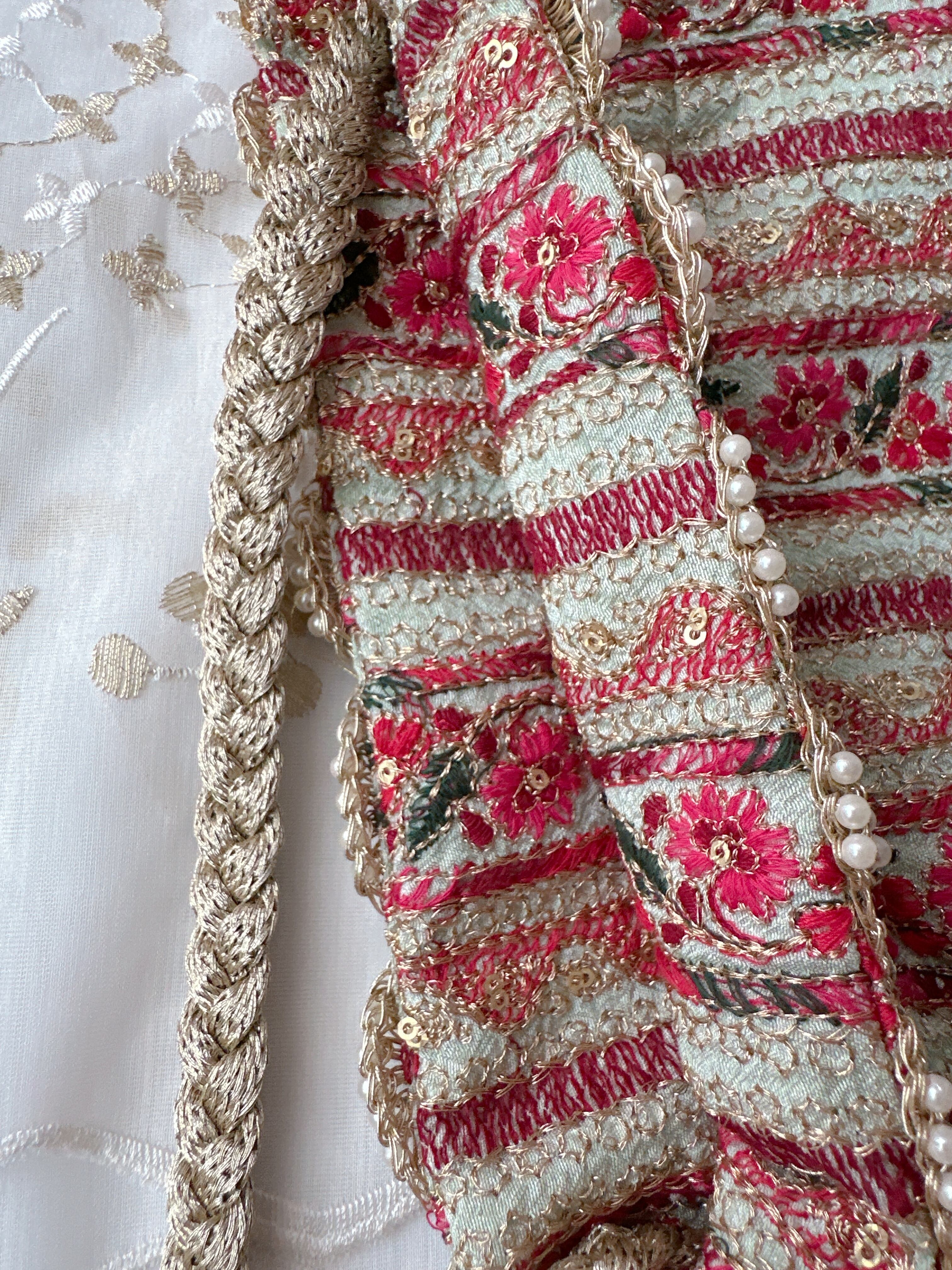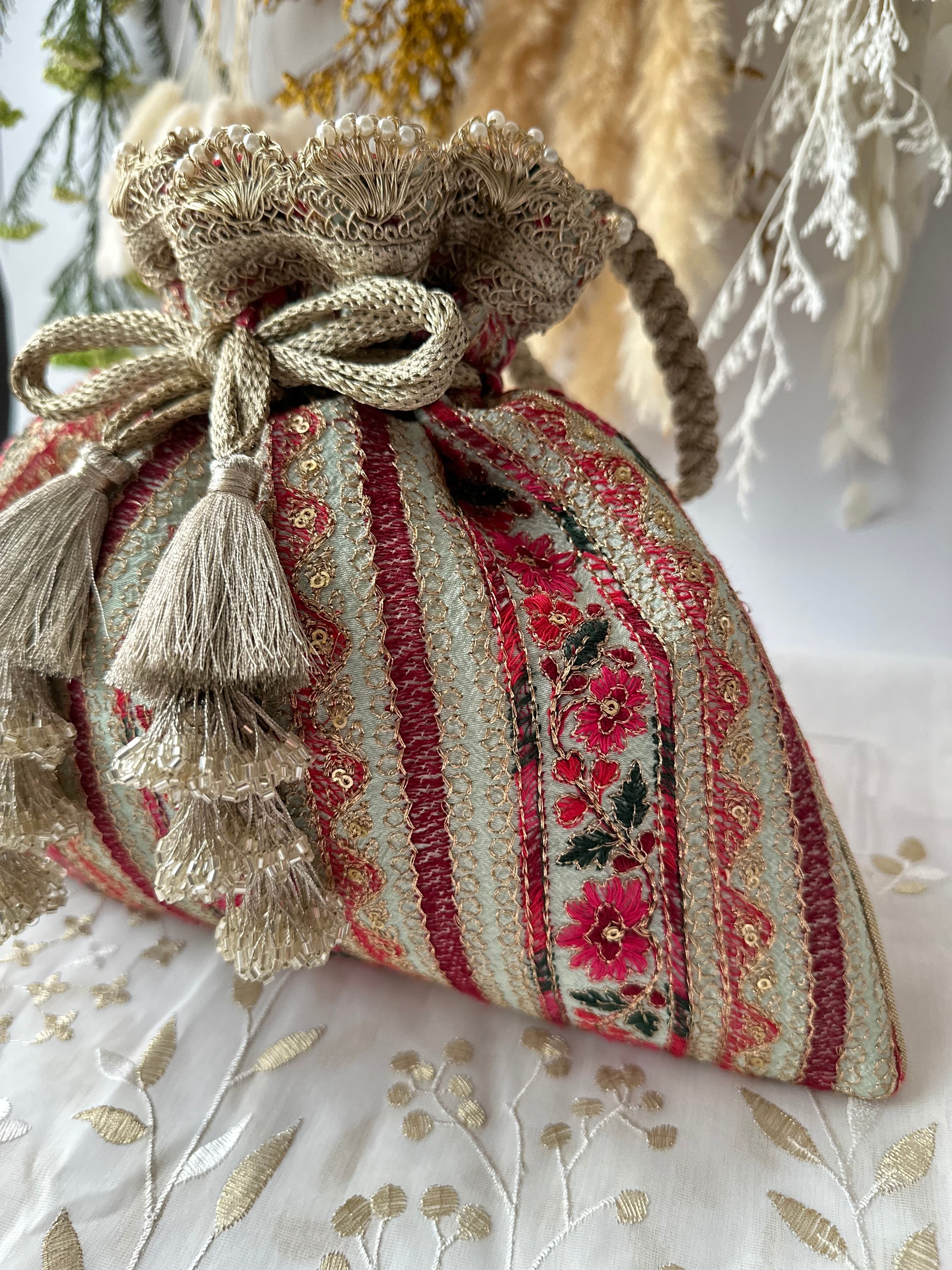 口の部分にはゴールドの繊細なレースのような刺繍が縫い付けられています