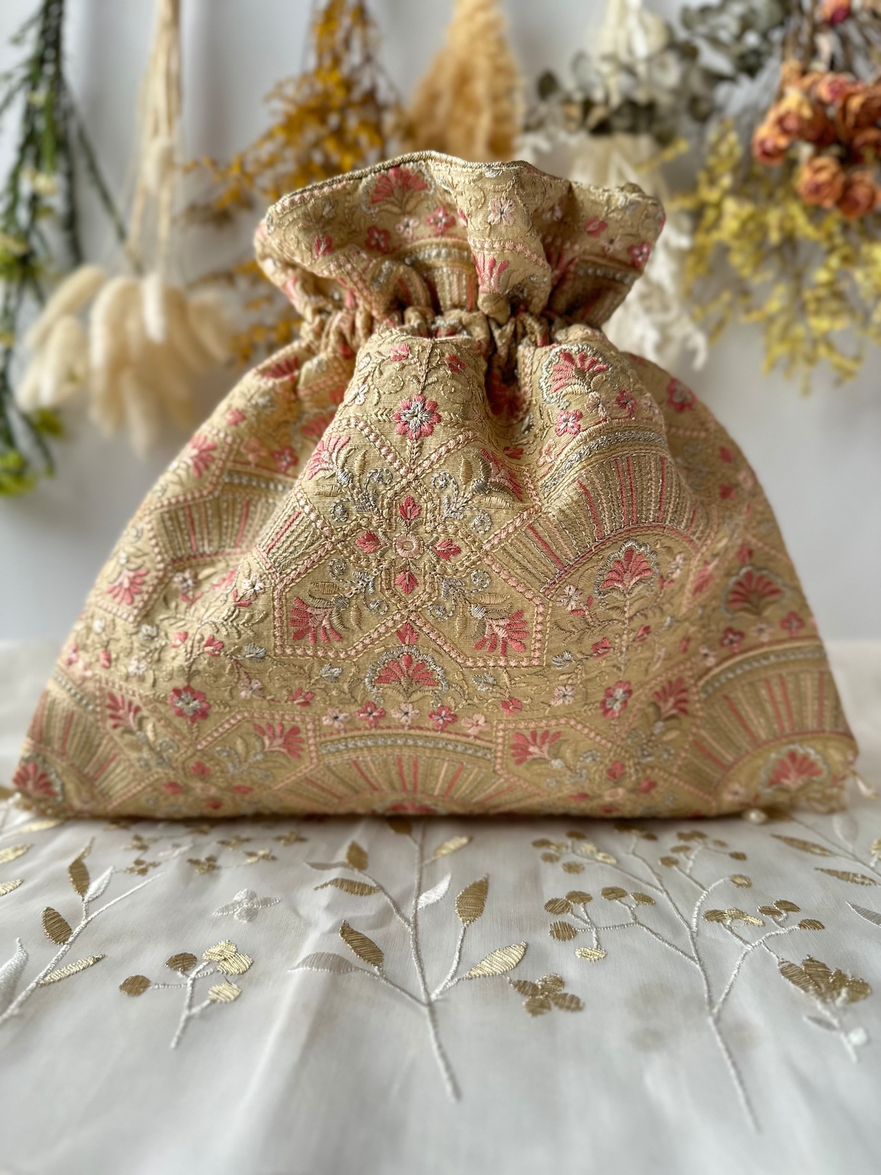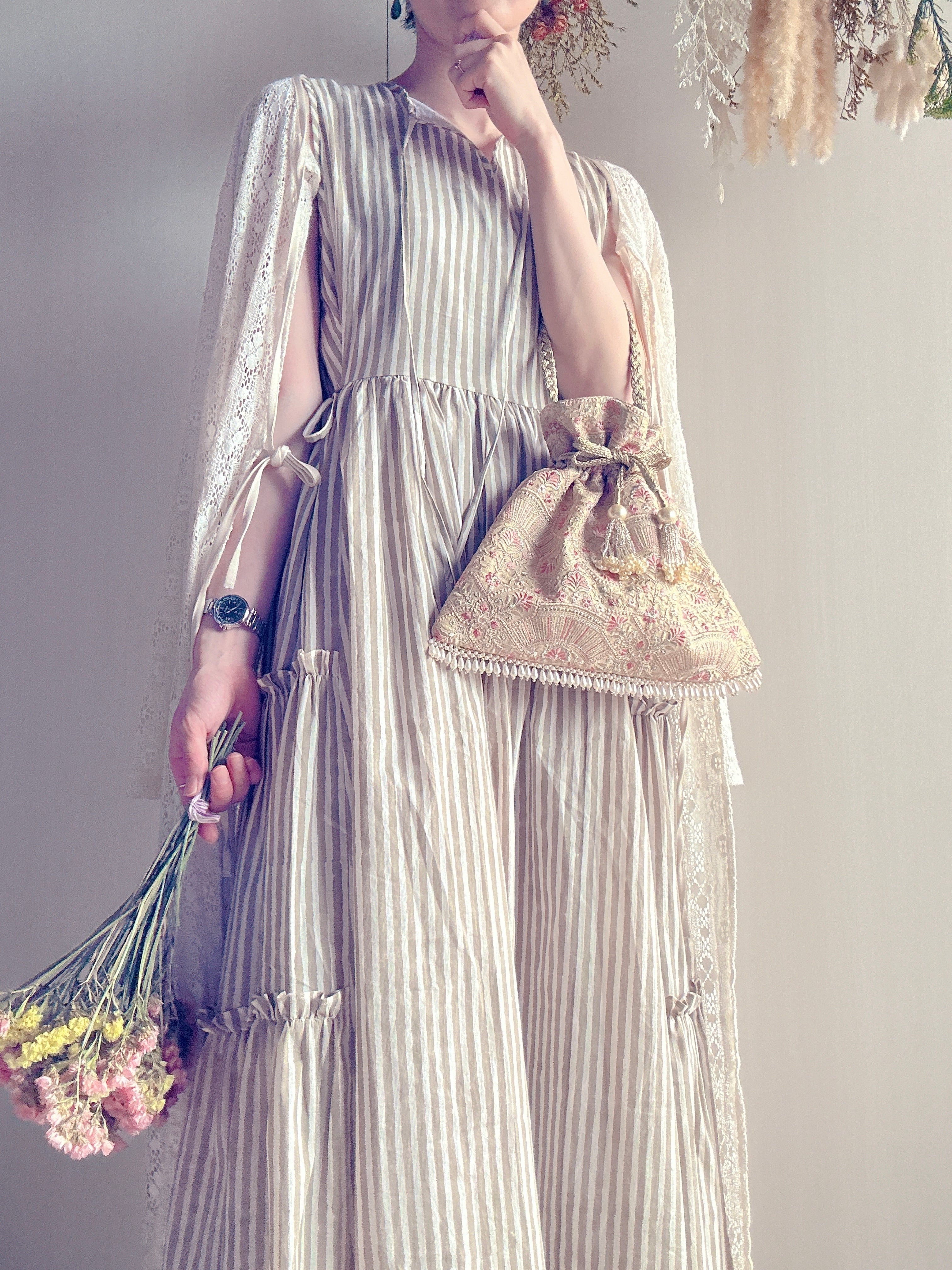 優しい色合いと華やかな刺繍のデザインが調和し、フェミニンで上品な印象