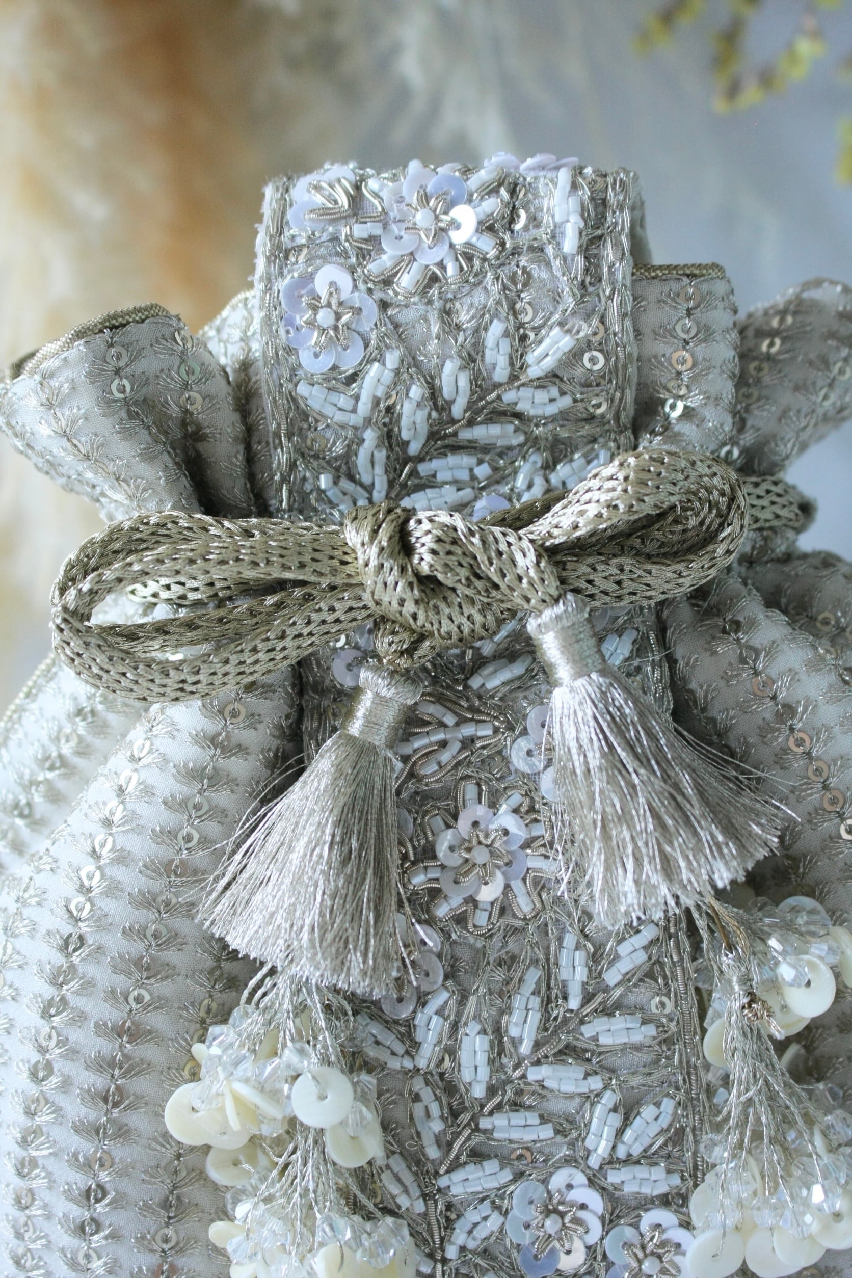 この刺繍は伝統的なザルドシという銀糸の刺繍技法を用いております