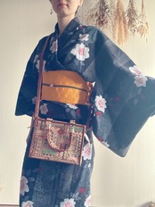 素材:セミシルク糸細工生地(表)、スエード(裏)