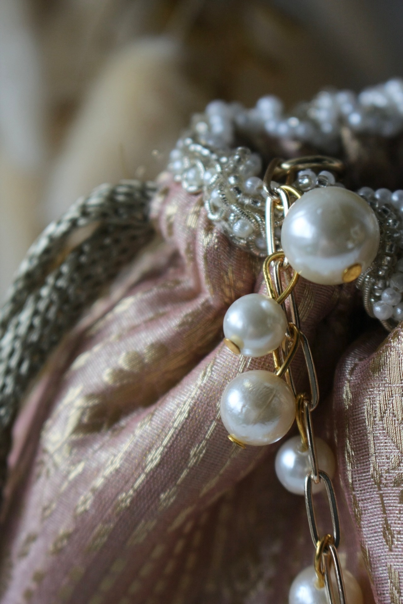 装飾:パールビーズ、クリアビーズ