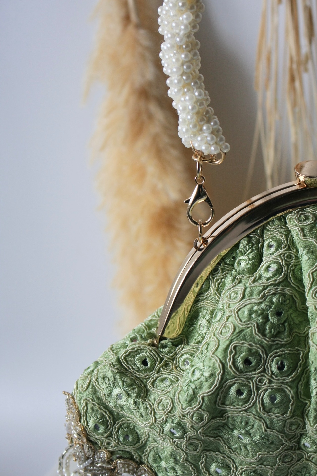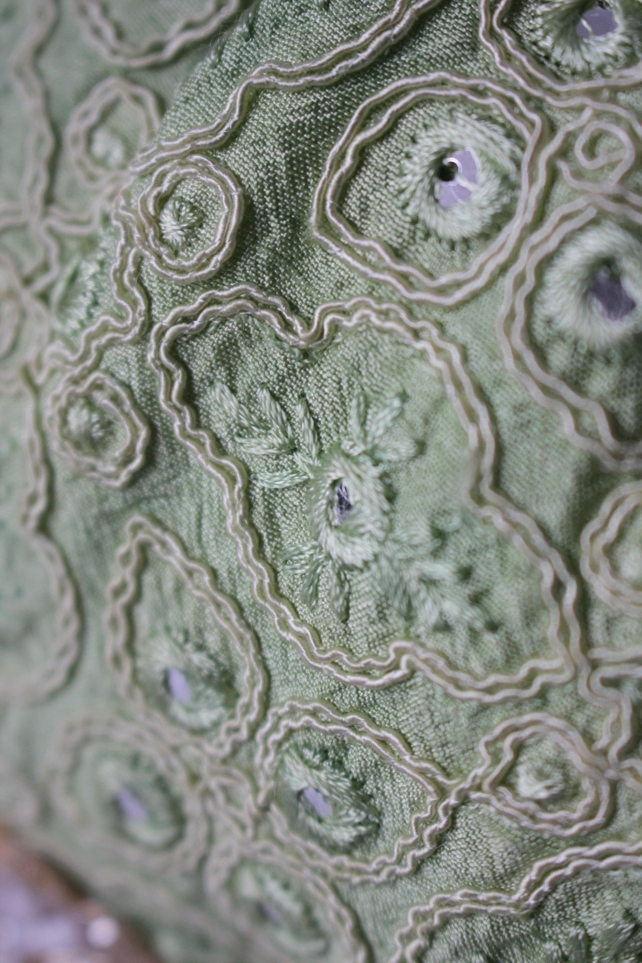 生地:刺繍入りジョーゼット生地(表)、スウェード(裏)