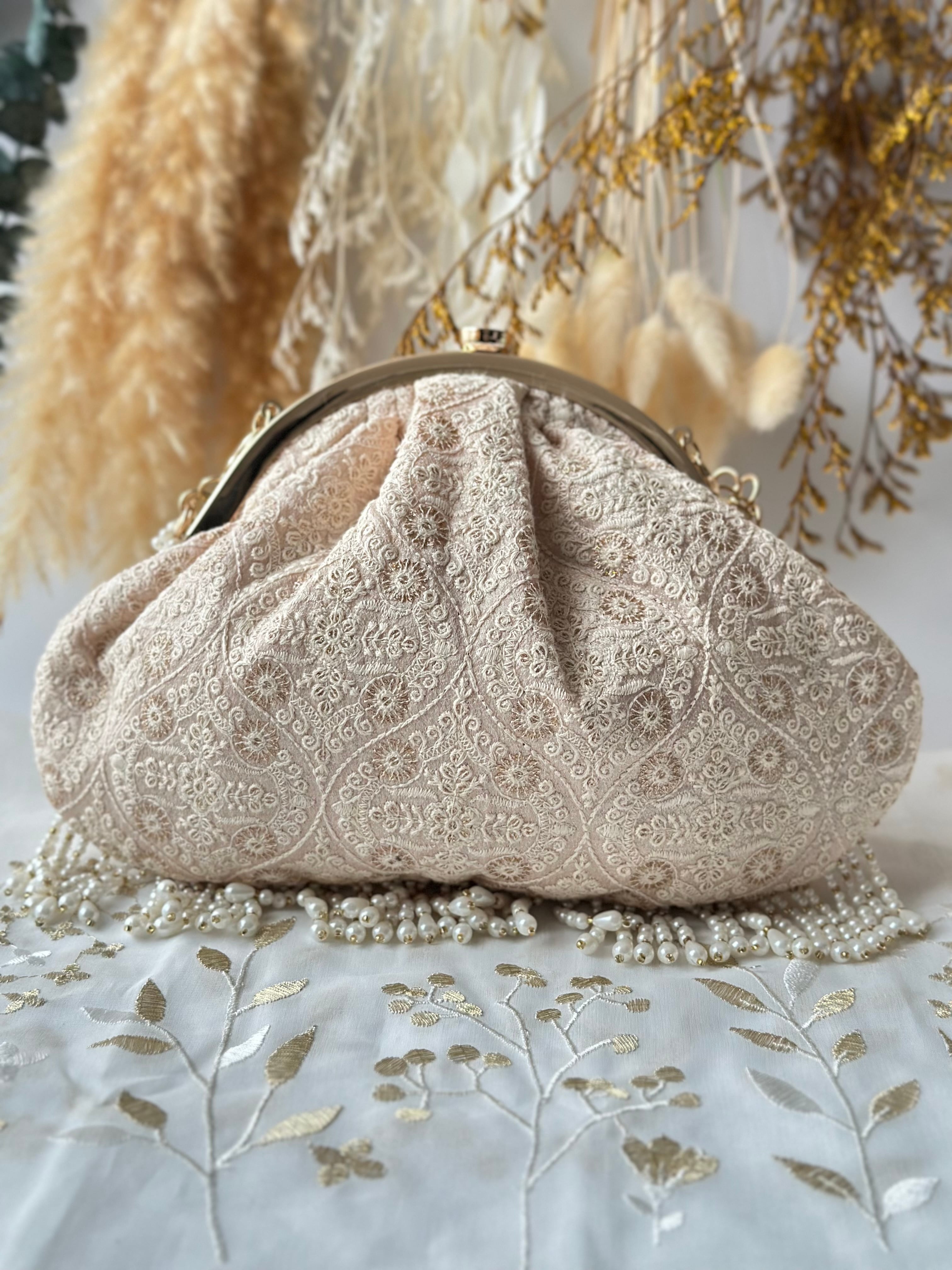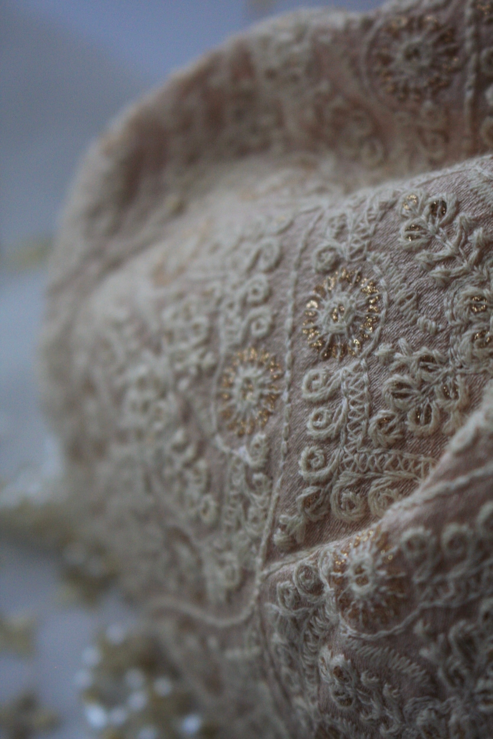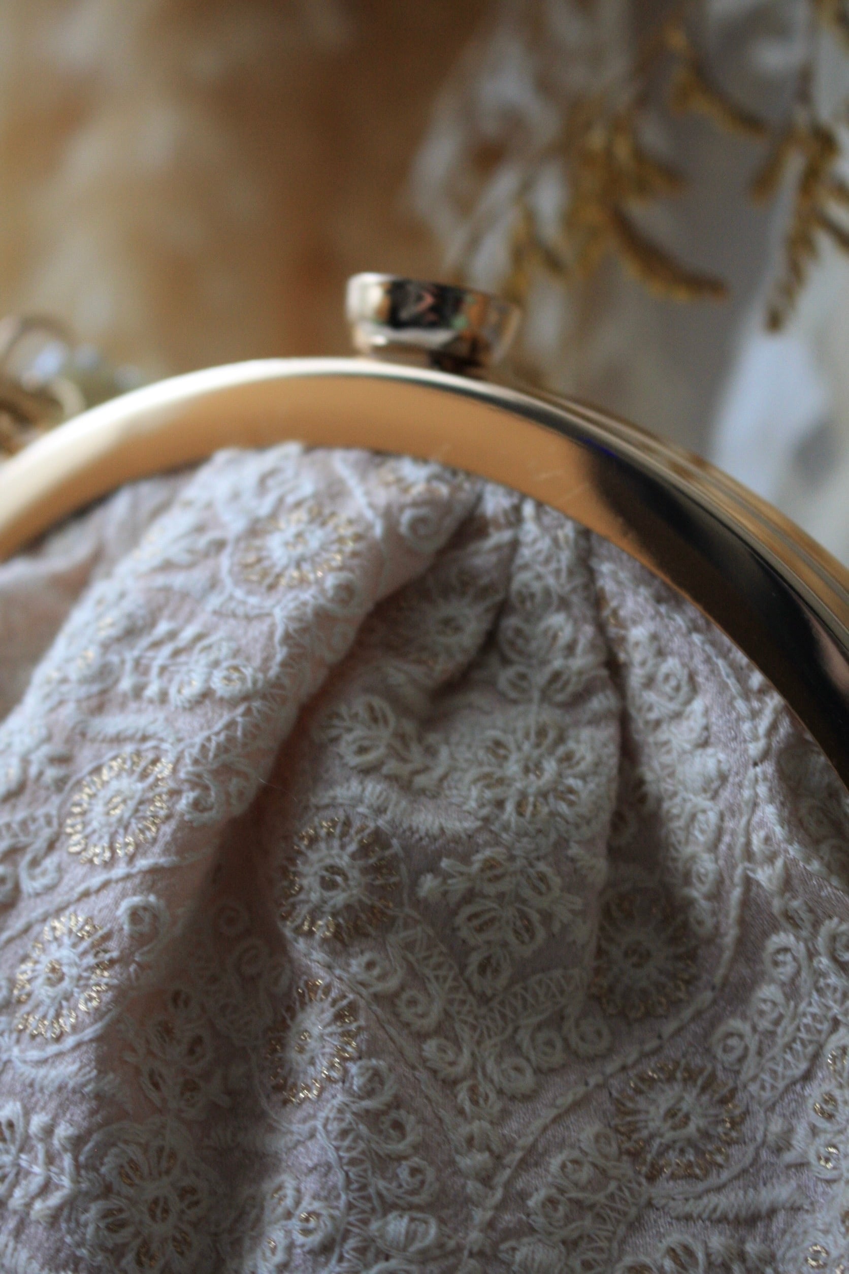 生地:刺繍入りジョーゼット生地(表)、スウェード(裏)