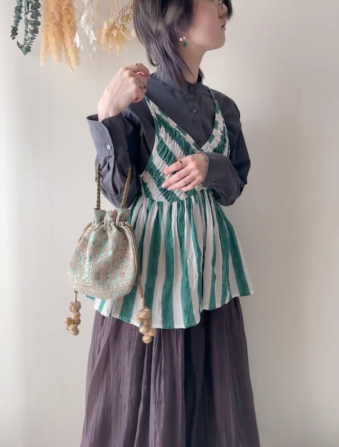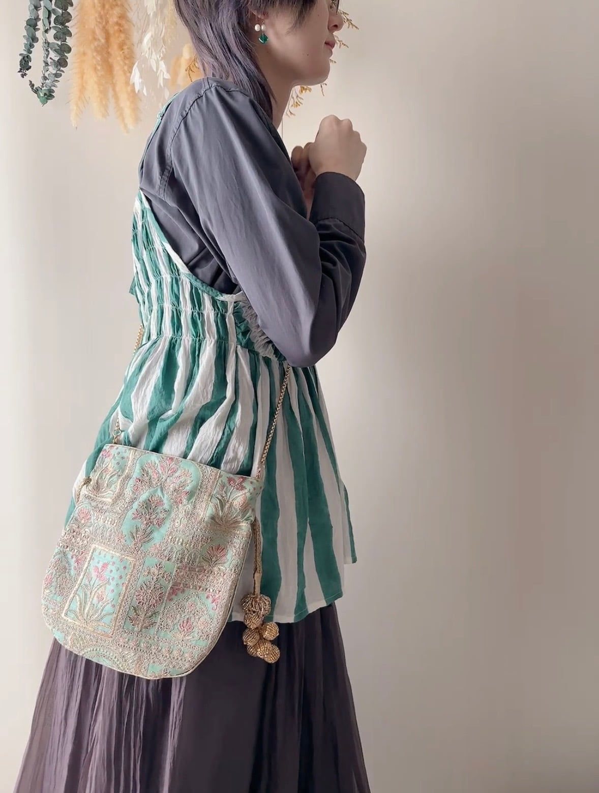 • 一点モノの風合い: 全てハンドメイドのため、刺繍やビーズの並びが一点ずつ異なります。手仕事ならではの揺らぎや表情を、唯一無二の個性としてお楽しみください。