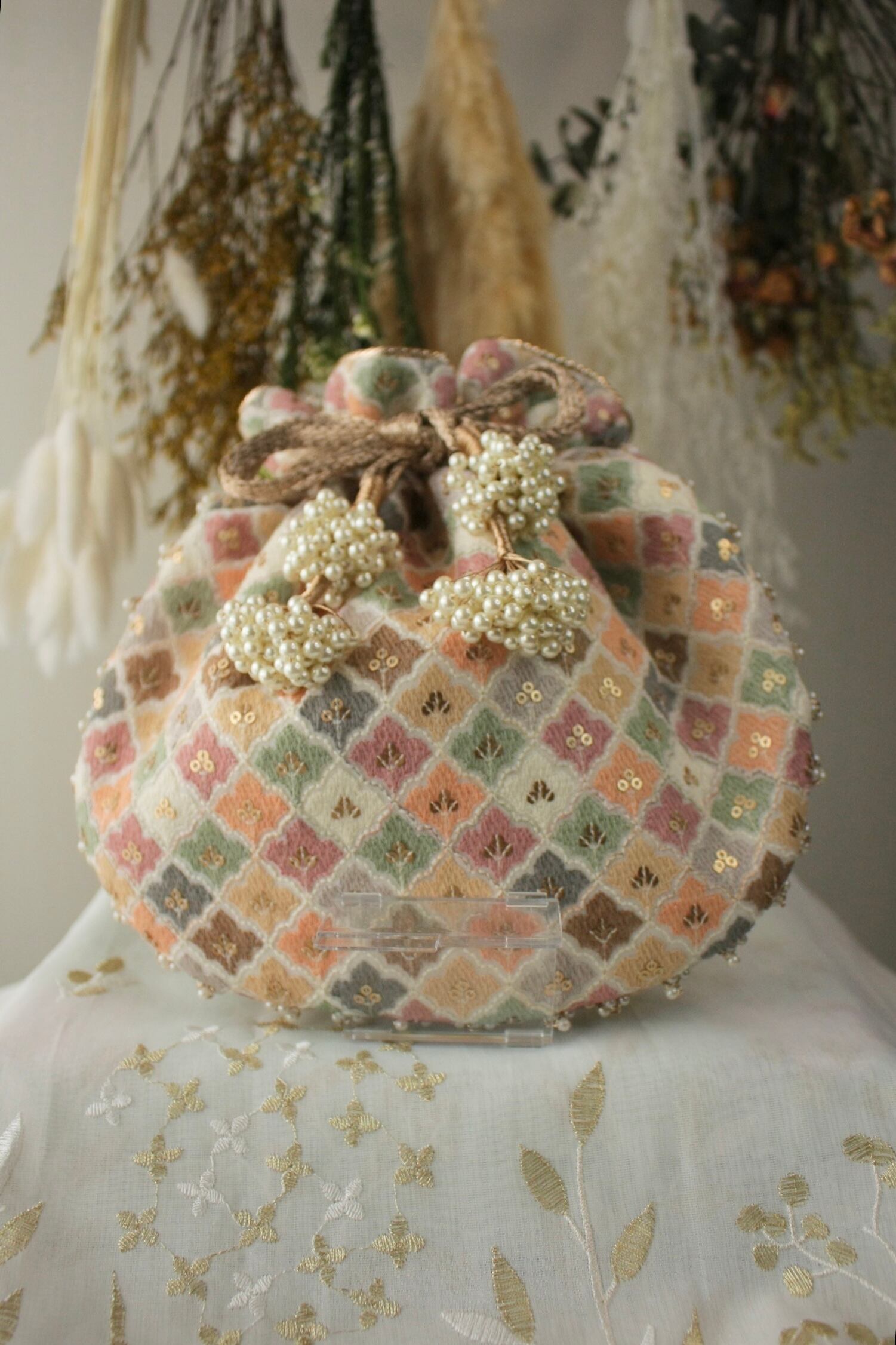 スパンコールが縫い込まれることでお花のようにも見えます