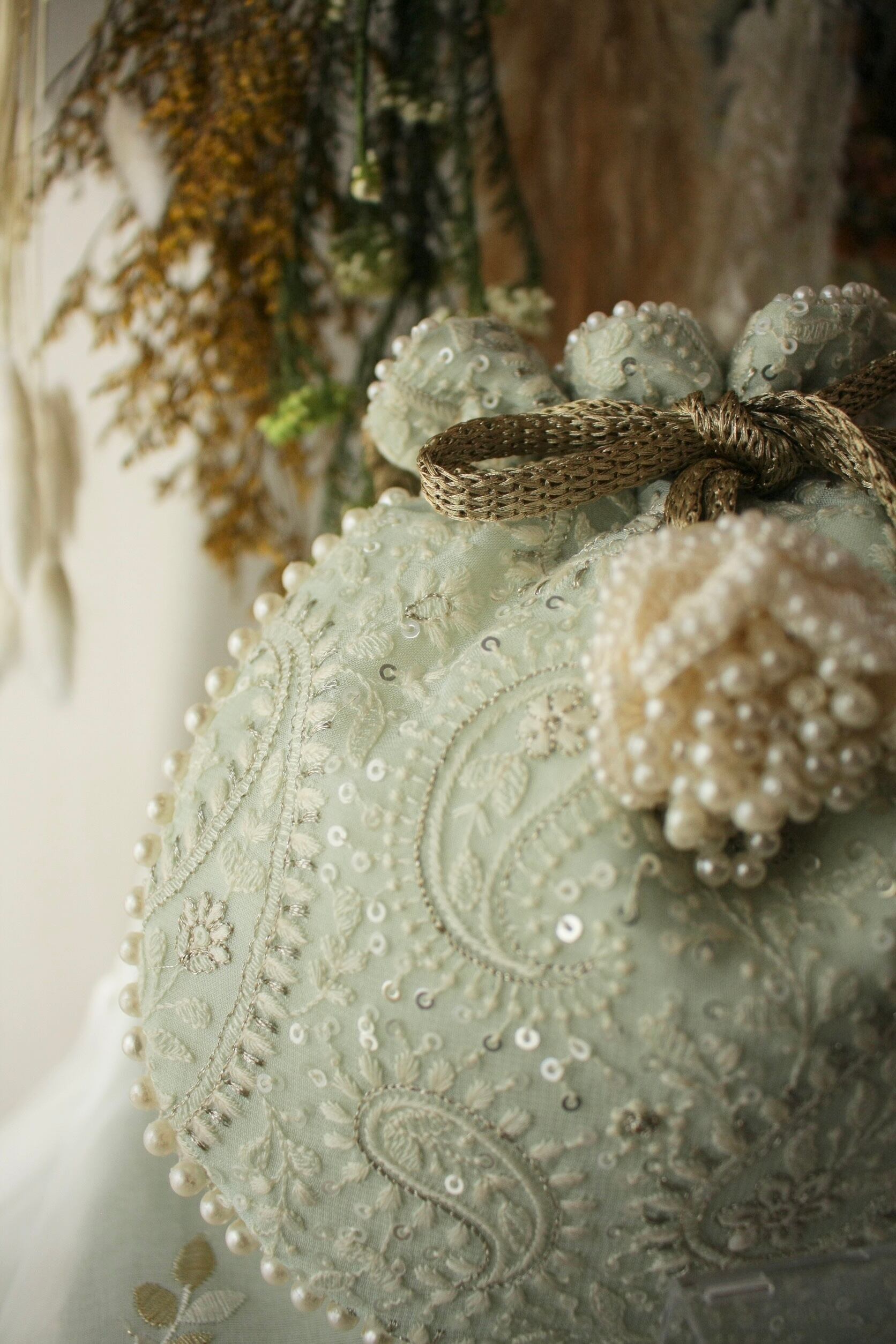 装飾:シルク糸、パールビーズ