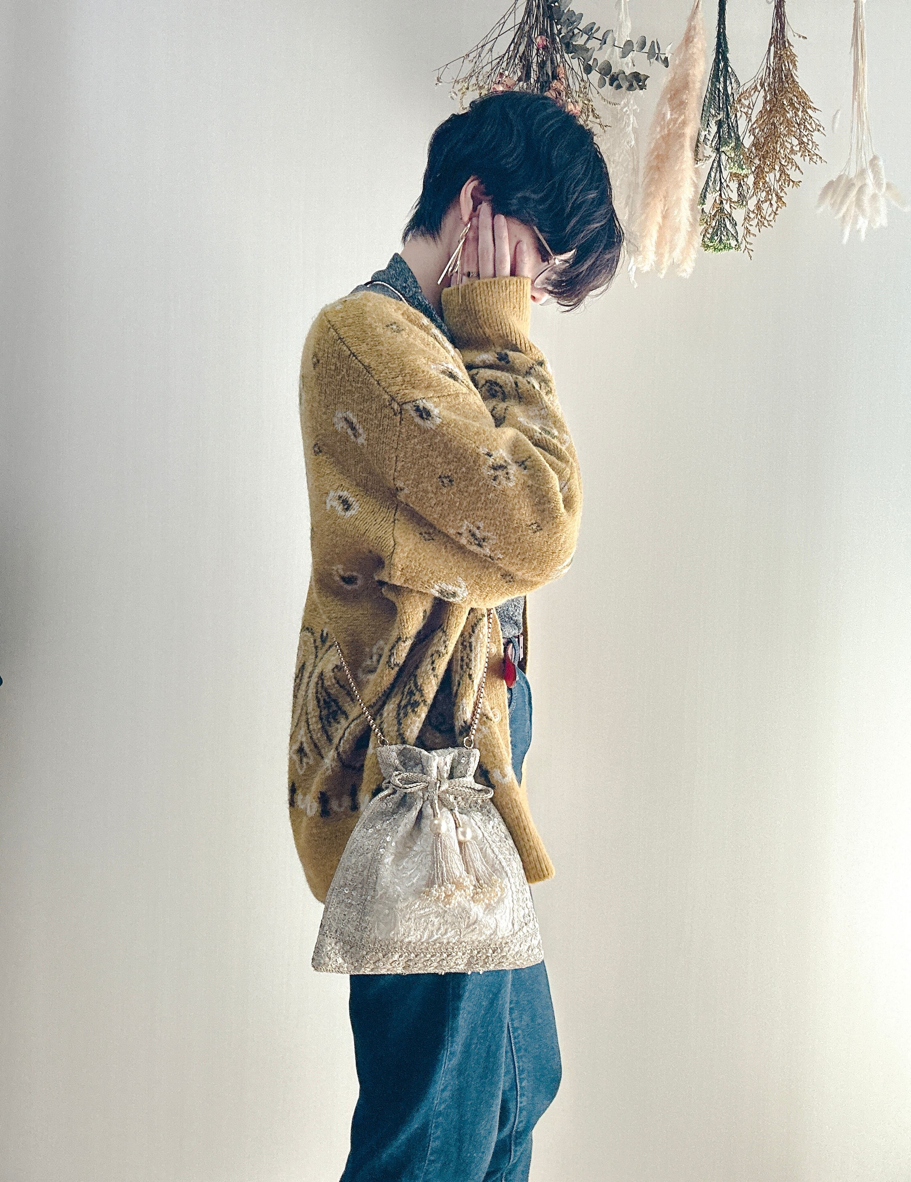 所狭しと縫い込まれたシルバーの刺繍