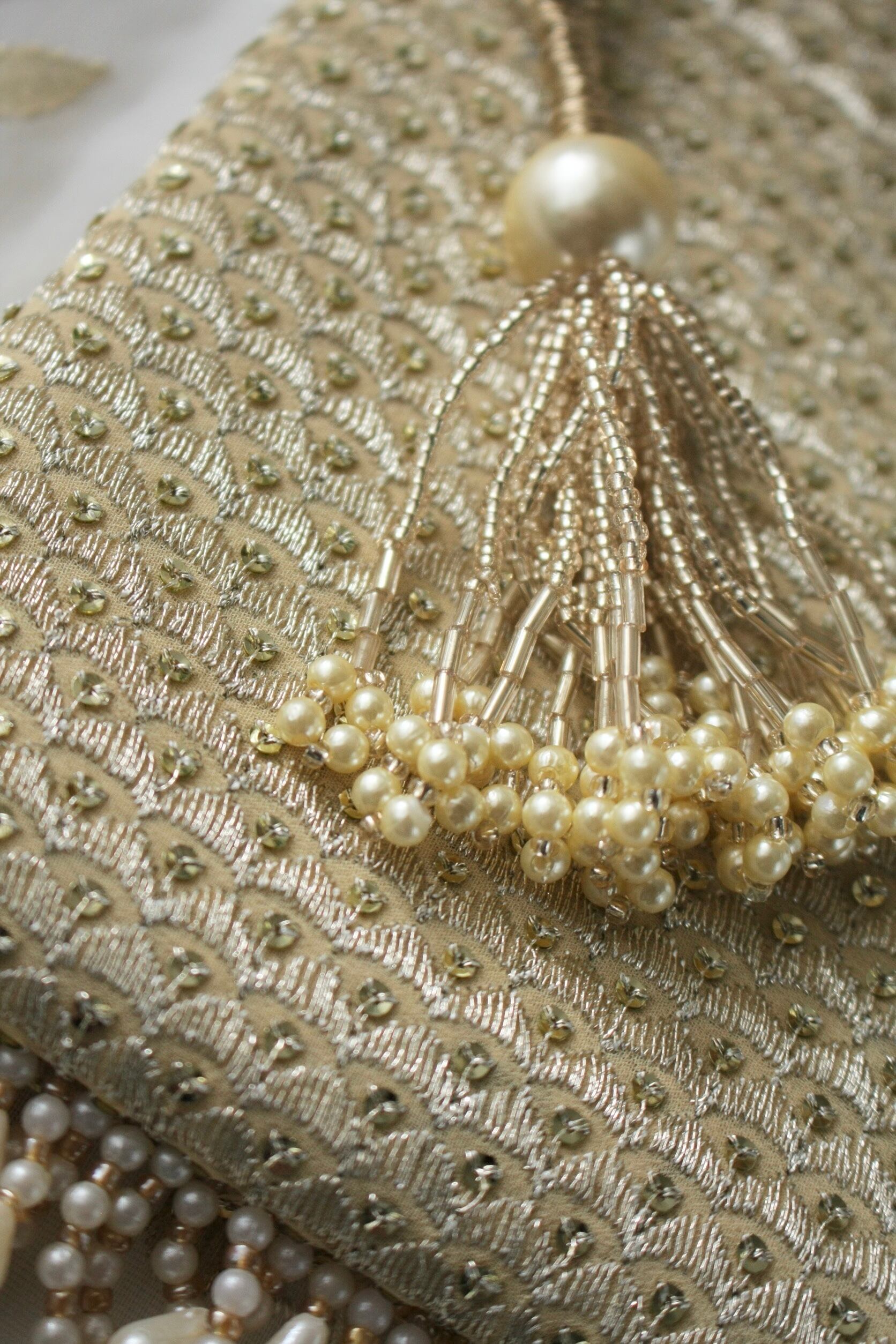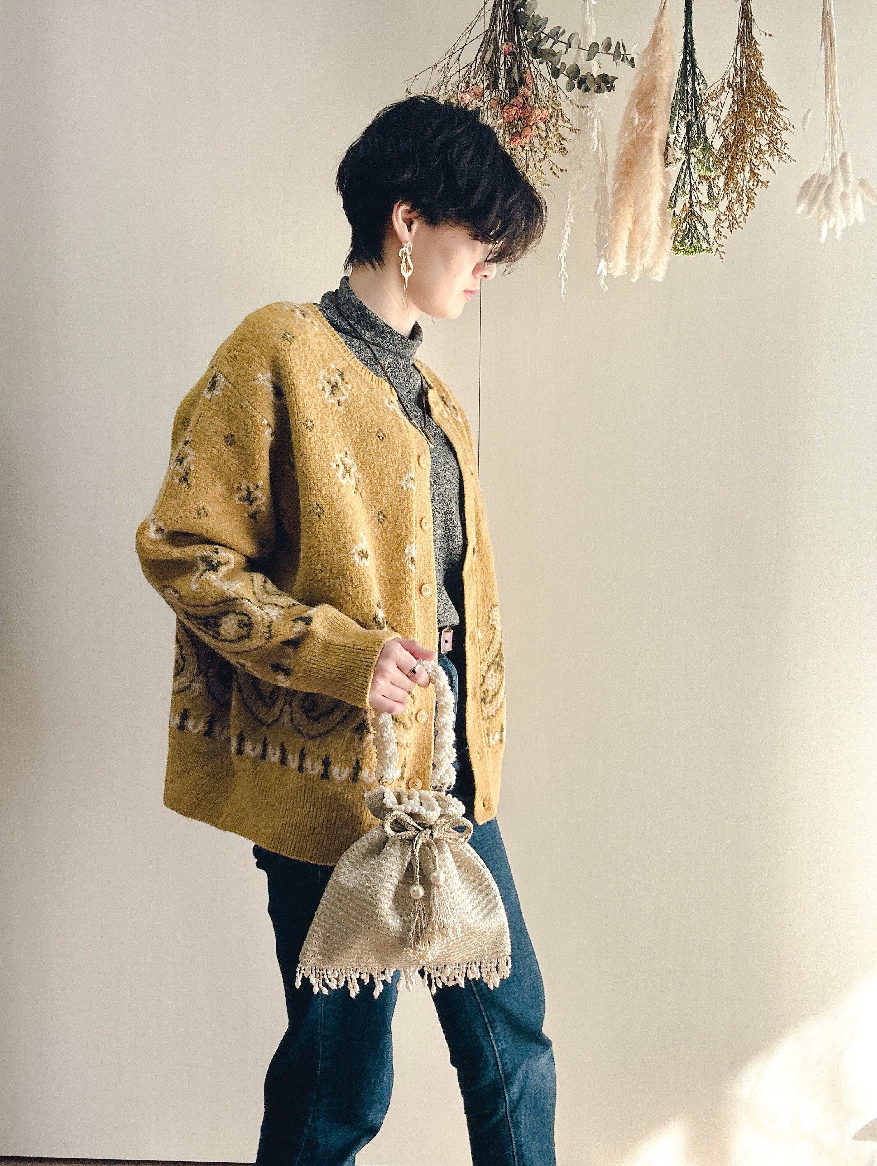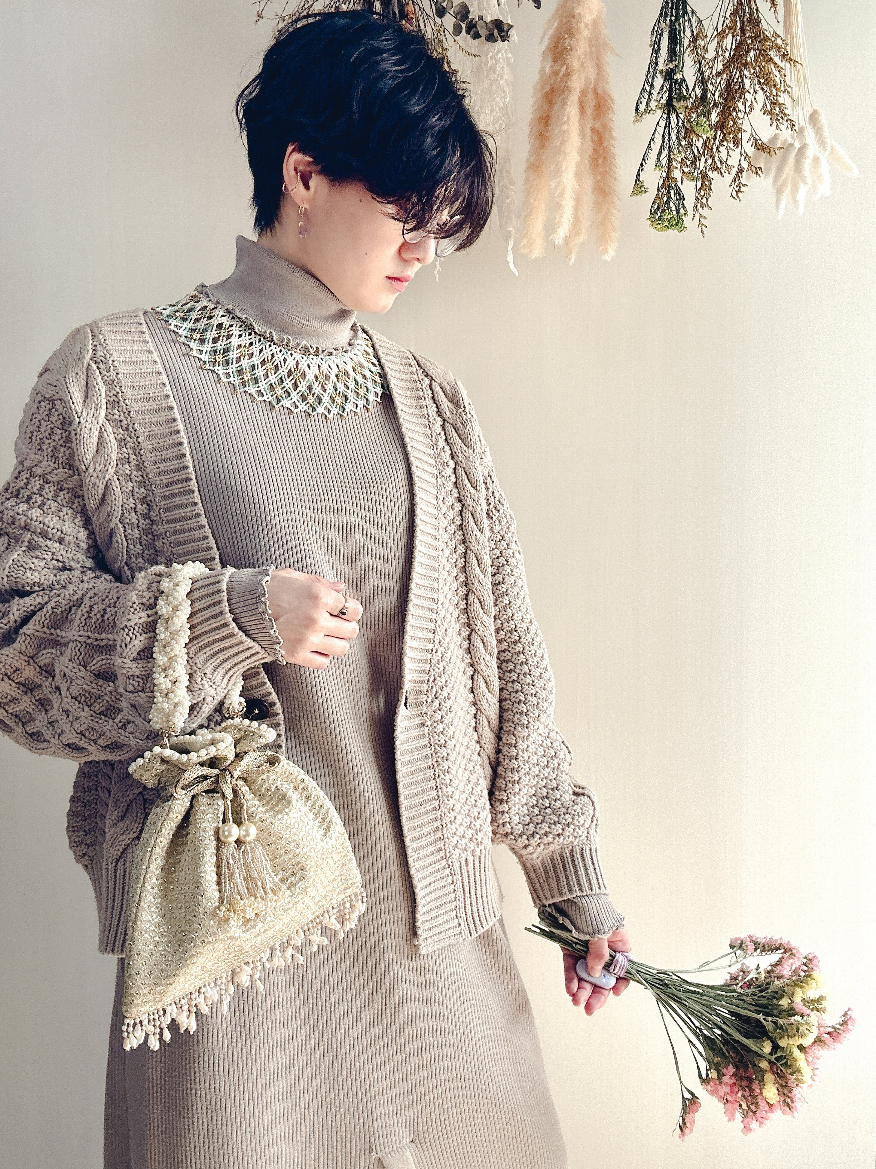 引き紐・持ち手:シャンパンゴールド、パールビーズ